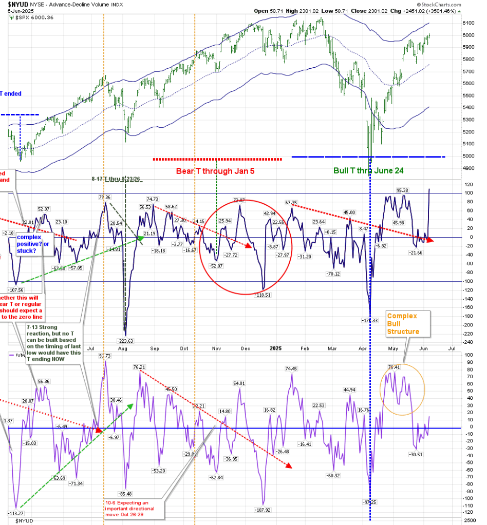 Doom sells papers. But sometimes things are just what they appear to be. In the present case, we are just on a roll that will eventually end, but using the existing rules of T-Theory as I understand them, we are in a bullish Volume Oscillator (VO) T that will last until June 24.