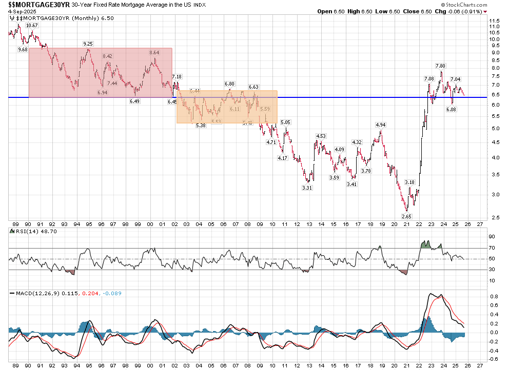 I could write more regarding what I see in the bond market, but perhaps I’ll do that next week. But I will leave you with a Mortgage chart that suggests we are at a level in Mortgage rates that could bring us back to a lower regime similar to 2002-2009, or stop moving lower as we are at support. Time will tell, and it’s near a critical decision.