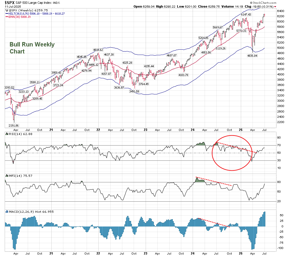 Additionally, even though there is no Daily T, I’ve hesitated to expect a major correction, as I mentioned in last month’s post (and in June on elliottwavetrader.net) there is the possibility of the creation of a Weekly RSI T. This is something Terry Laundry investigated at the end of his career, and I am still hesitant in following it without a Daily T. That being said, it is progressing. The weekly RSI T I posted formed its left side in July 2024, and ends at the end of December. It now looks like this: