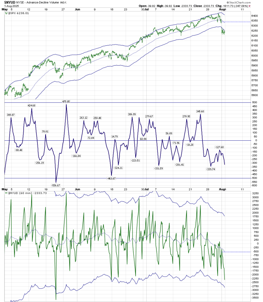 The Simple Chart (from Carl Swenlin) shows no momentum in Breadth or Volume. (But we know the Volume aspect from the Volume Oscillator.)